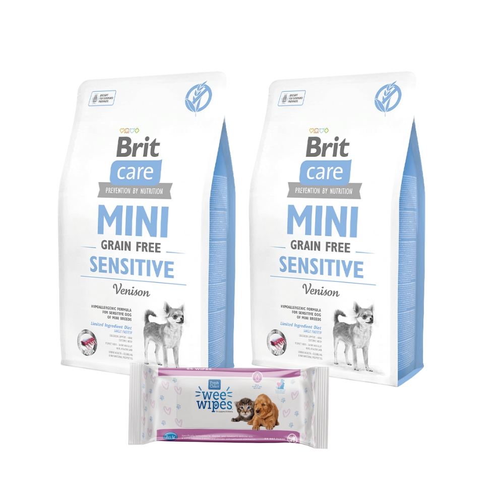2 Brit Care Mini GF Sensitive (2kg) + Pet Ag Wipes Gratis