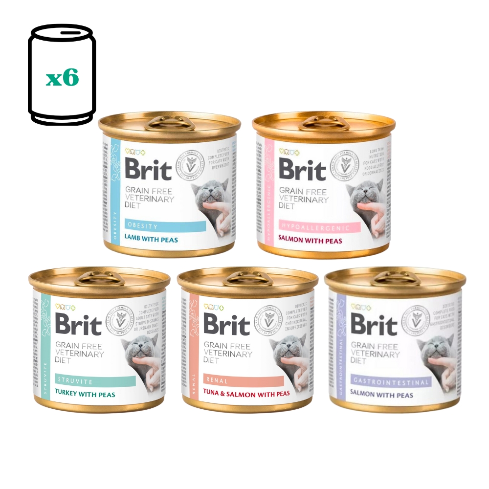 Se puede combinar las siguientes latas Brit Vet Diet Cat 200gr