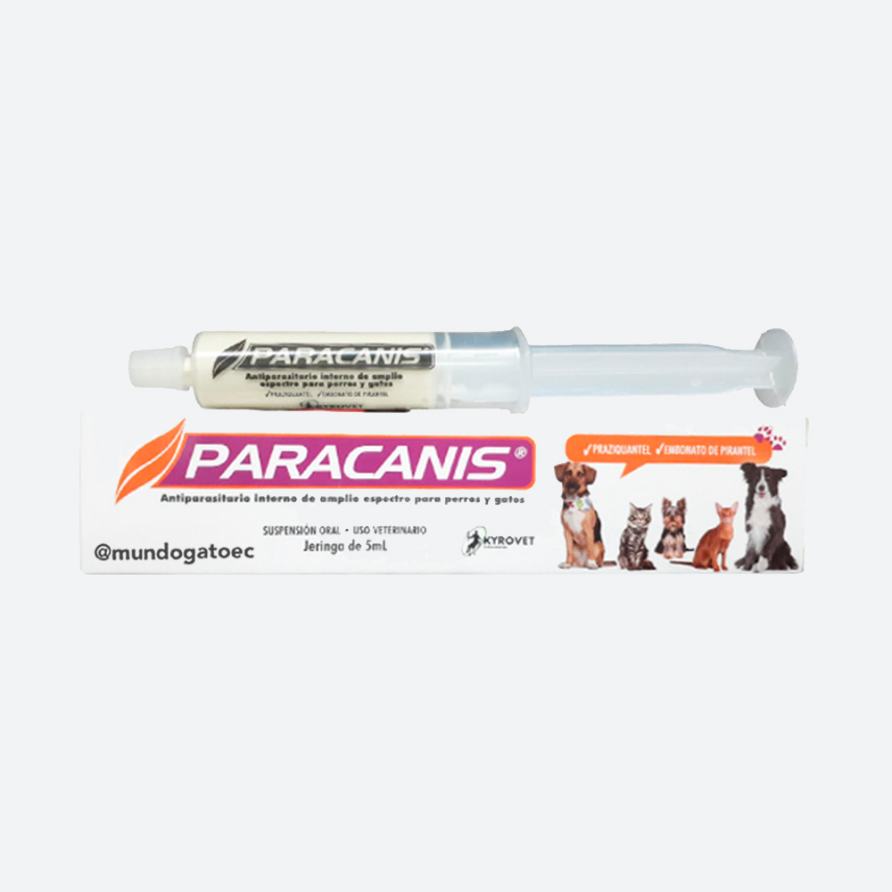 El Antiparasitario interno para perros y gatos – PARACANIS puede ser utilizado en perros y gatos, para el tratamiento de infestaciones ocasionadas por los siguientes nemátodos : Ancylostoma caninum, Uncinaria stenocephala, Toxocora canis y Toxascaris leonina.