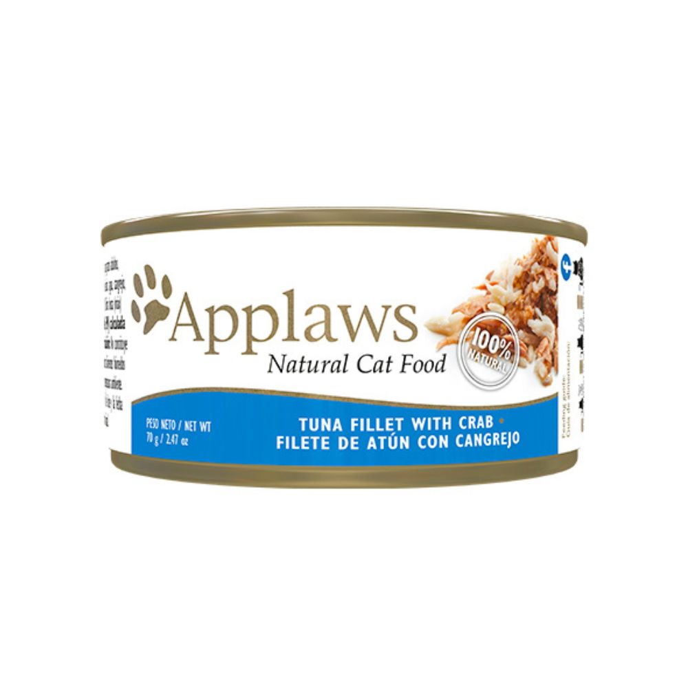 Alimento húmedo para gatos. Contiene 75% filete de atún con cangrejo.