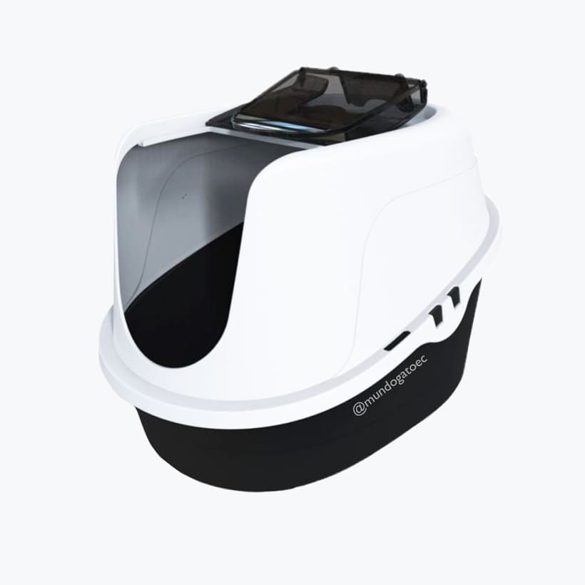 Un arenero cubierto mediano con tapa demontale total, que respeta la privacidad y la sofisticación de tu gato, incluso, a la hora de hacer sus necesidades básicas.