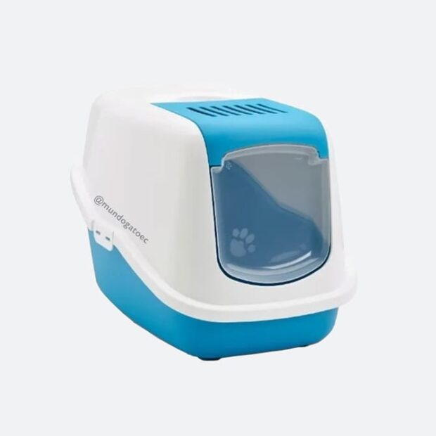 El arenero Mediano Tipo iglú Nestor – Azul para gatos es absolutamente seguro a prueba de escapes, ya que, la cubierta inferior es más alta en la parte trasera; ideal también para los gatos que hacen pipí de pie.