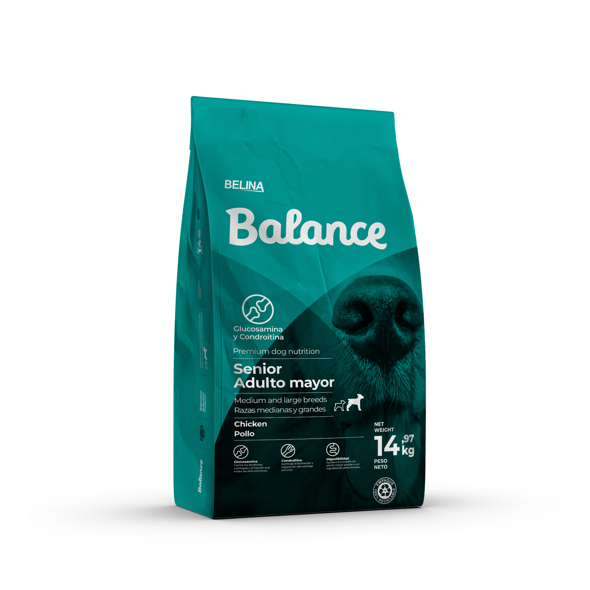 Alimento completo y balanceado para perros adultos mayores de 7 años, razas medianas y grandes.