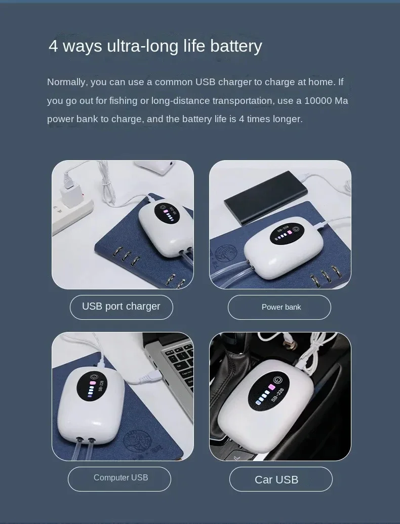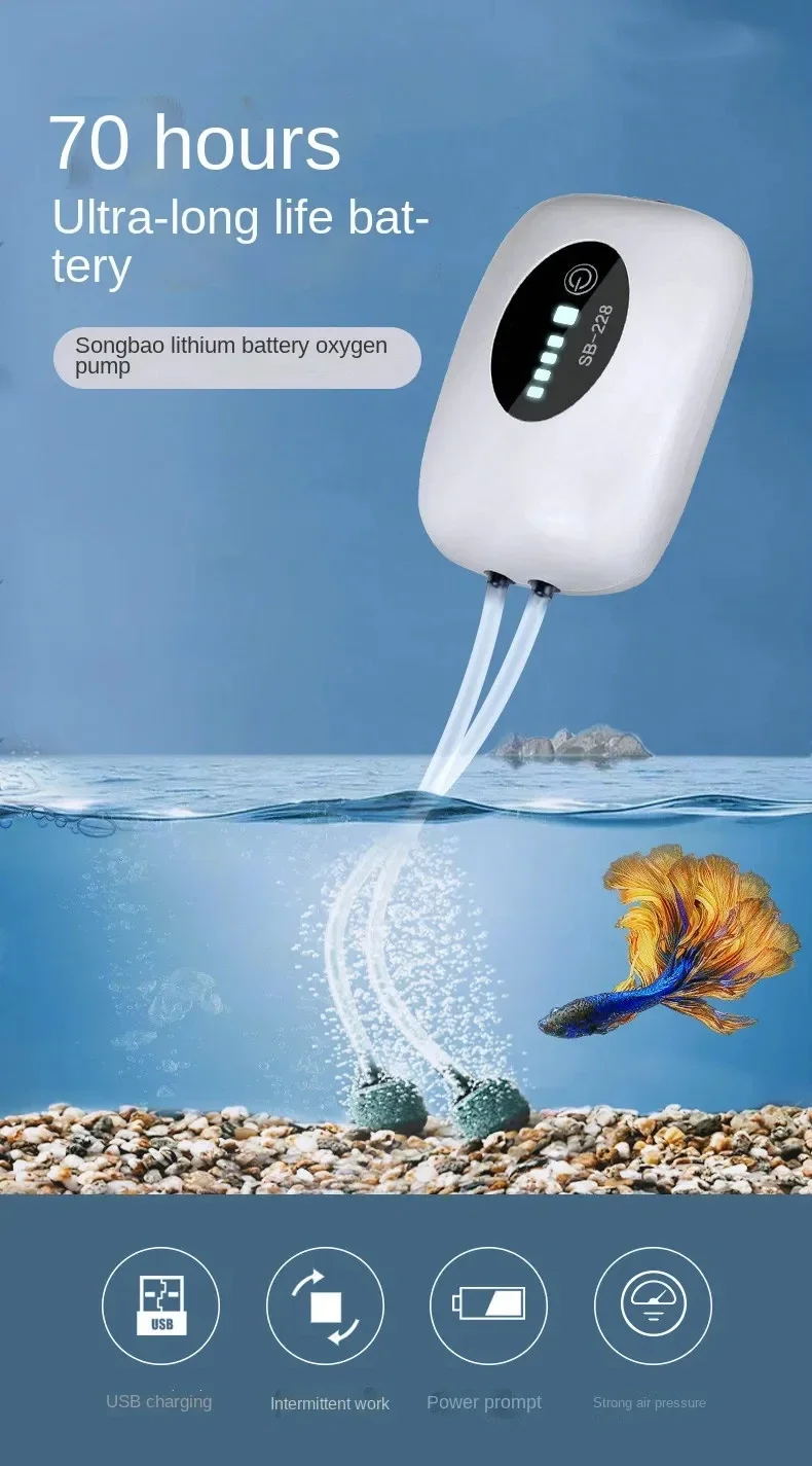 Bomba de oxígeno para acuario, compresor ultra silencioso , 4800mAh, carga USB.