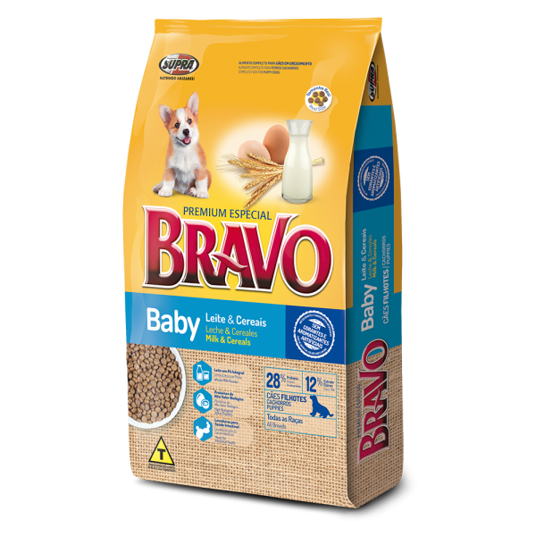 Bravo Baby – Cachorros es una fórmula desarrollada para perros cachorros de todas las razas hasta los 12 meses de edad. Está elaborada con leche y cereales que ayudan a tener un sistema óseo saludable; sus elevados niveles de proteína (29%) y energía (3.699kcal/kg) garantizan un desarrollo saludable.
