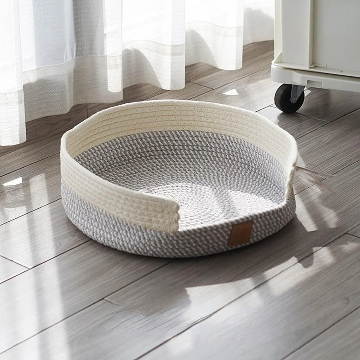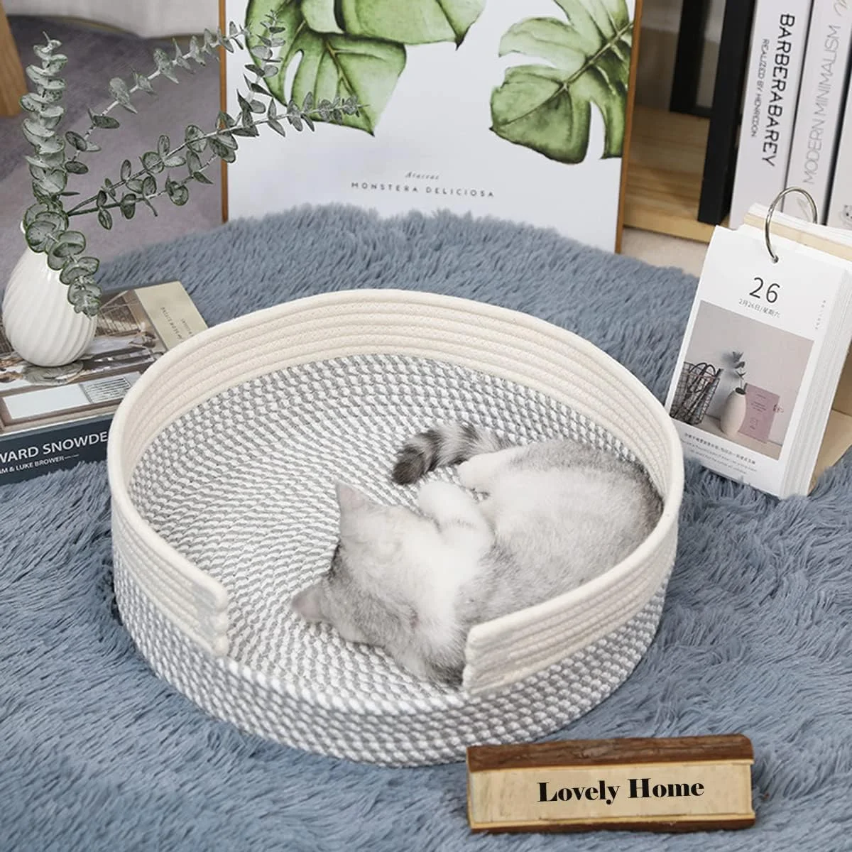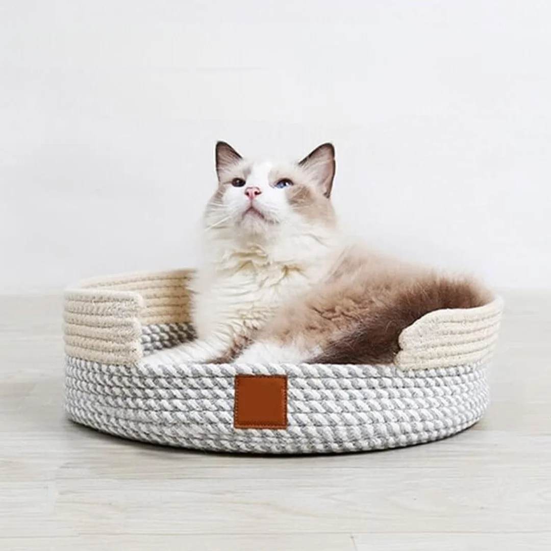 Esta cama de textura de cuerdas trenzadas duraderas es ideal para que tu gato descanse mientras alivia su estrés rascando. Al estar fabricada en algodón natural mantiene a tu mascota fresca en verano y cálida en invierno. No contiene formaldehído ni sustancias tóxicas, por lo que tu michi puede morder de forma segura. El diseño minimalista y simple permite que se integre en tu hogar.
