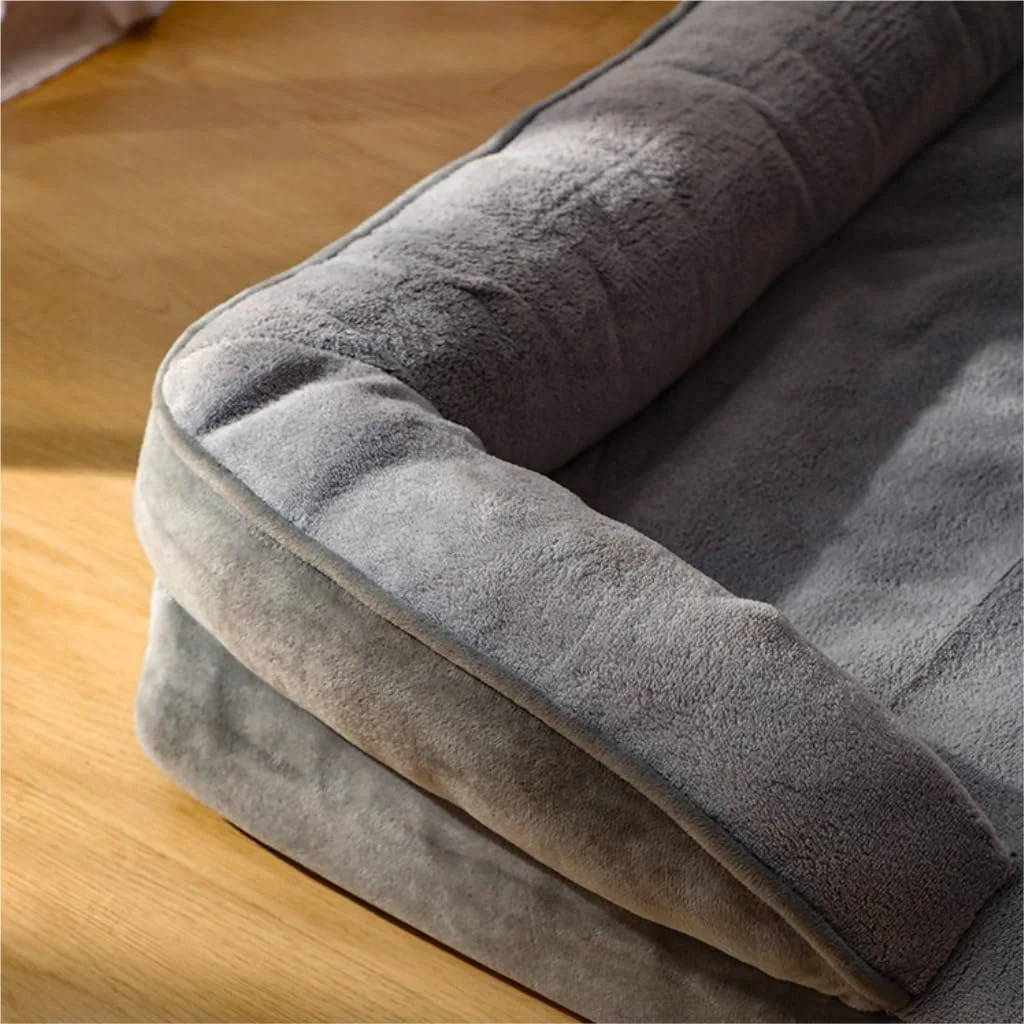 Cama L colchón ortopédico, con almohadas laterales. 89x60x14cm (Gris)