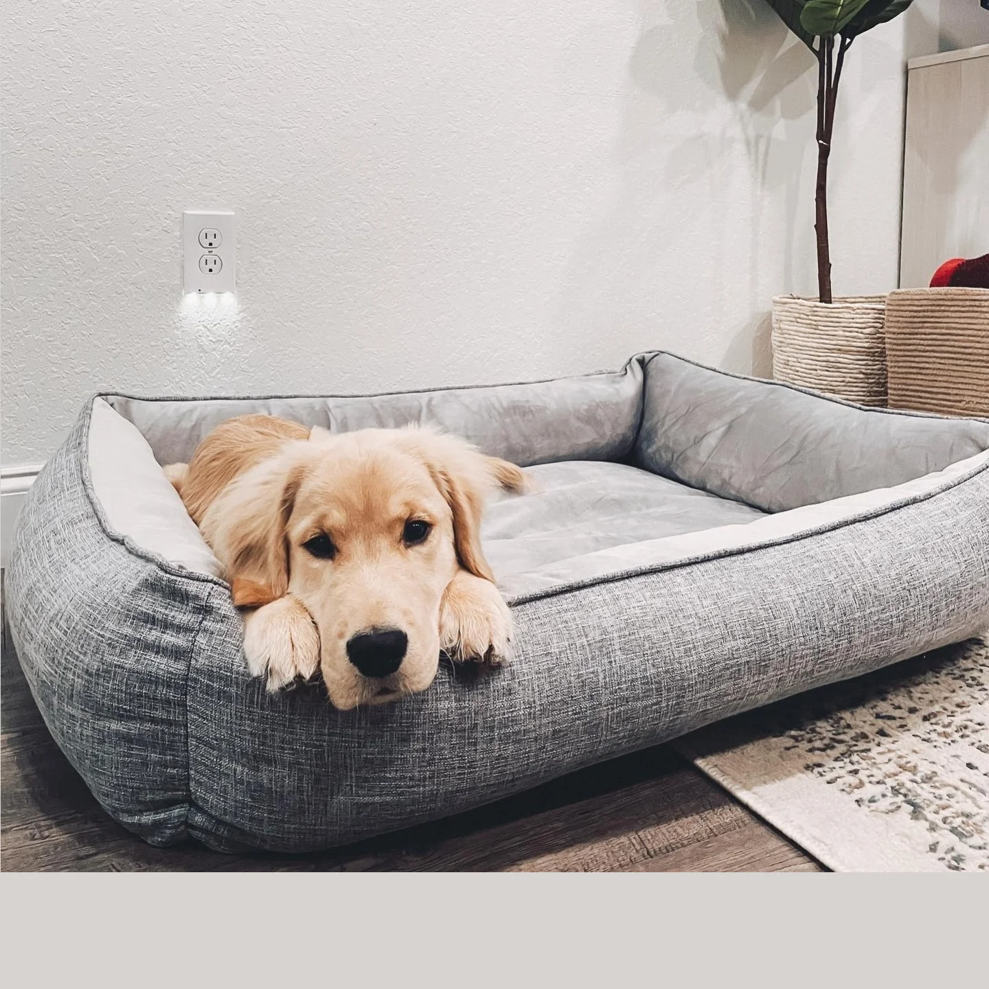 La superficie para dormir está forrada con suave microgamuza diseñada para soportar las excavaciones de perros grandes, además es resistente al agua. El colchón de espuma cuenta con un forro impermeable para protegerlo en caso de ser necesario.