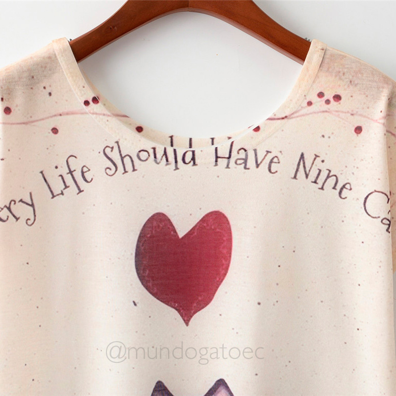 Camiseta suave de poliester sin costuras, porque cada vida necesita 9 gatos =^..^=