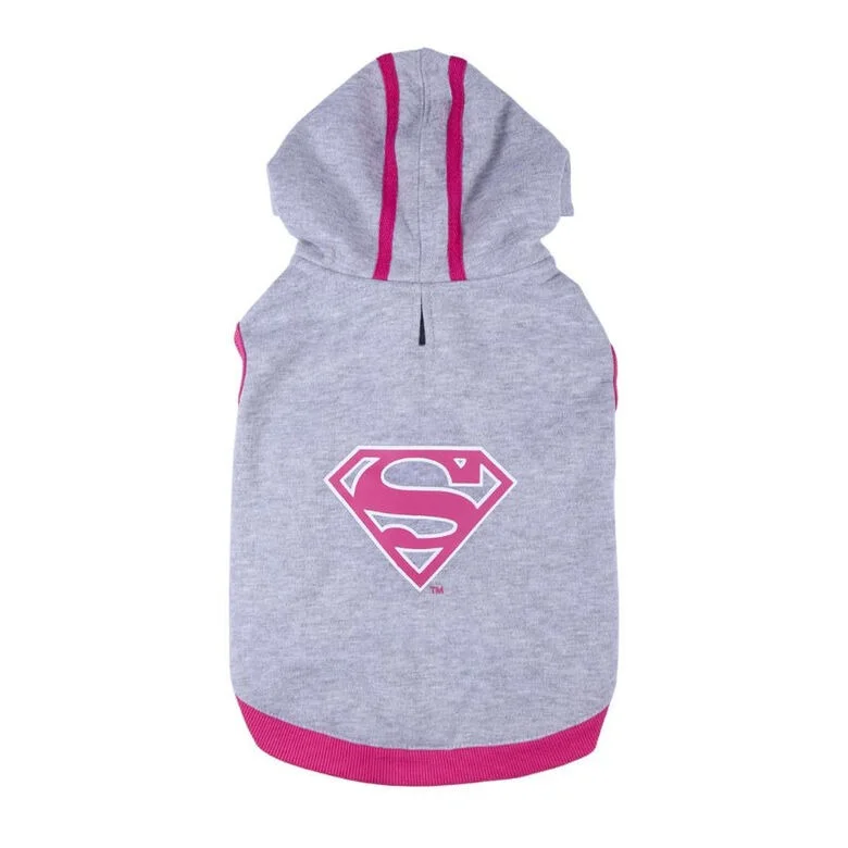 Este buzo para perros con estampado de Supergirl del Universo de DC ofrece a tu mascota un fantástico accesorio que lo protegerá del frío durante sus paseos. Posee una cómoda capucha con agujeros para las orejas, dos orificios frontales para las patas delanteras y se sujeta cómodamente a las patas traseras con dos elásticos suaves que no causan molestias a tu mascota. Además, en la zona media de la parte superior posee un pequeño hueco para enganchar fácilmente la correa al collar, brindando mayor practicidad.