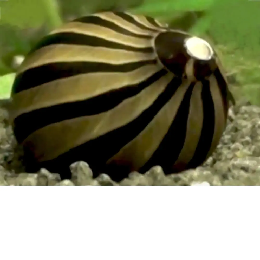 Este bello caracol cebra de rayas doradas y negras alcanza un tamaño de hasta 3 cm. Además de su bonito aspecto, también es un buen devorador de algas, ya que elimina las molestas algas de roce y las que manchan el cristal y la decoración. También le gusta comer biofilms y otros crecimientos. Como las larvas de caracol cebra necesitan agua salobre para reproducirse, no hay que preocuparse por la infestación de caracoles ni siquiera en acuarios con muchas algas y un alto suministro de alimento.