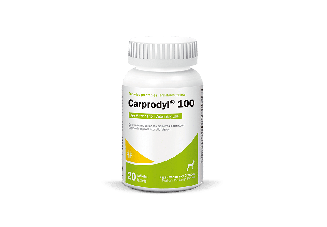 Carprodyl 100 es un medicamento veterinario en tabletas utilizado como antiinflamatorio y analgésico para aliviar dolores musculares, articulares y procesos inflamatorios en perros y gatos.