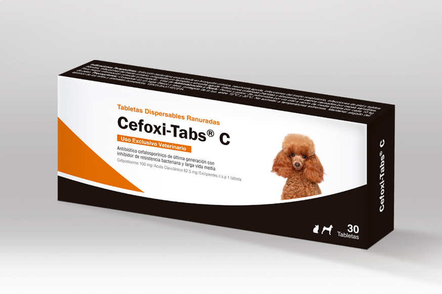 Cefoxi-Tabs C es un antibiótico oral a base de cefalexina, eficaz para el tratamiento de infecciones de piel, respiratorias, urinarias y de tejidos blandos en perros y gatos. Presentación con 30 tabletas de uso veterinario.