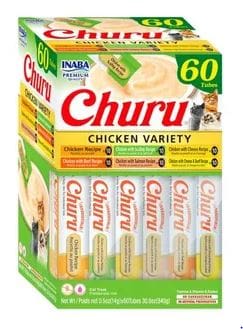 El paquete contiene 60 tubitos cada uno en seis variedades de Pollo. Cada tubo de 14 gr. Total 840 gr