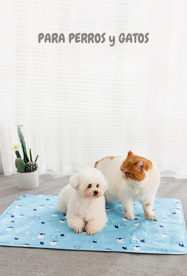La colchoneta trae en su interior un polímero que, al tomar contacto con el agua, la convierte en un Gel de Hielo que brinda frescura a las mascotas al tomar contacto con ella.