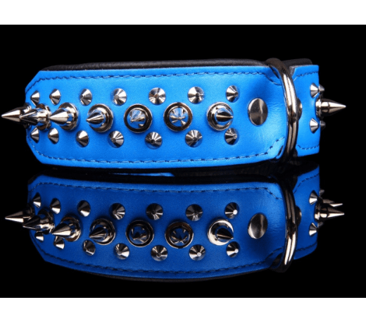 .Collar ancho de piel natural para perros adornado con pinchos y fabricado a mano en Europa.Estos collares de cuero, confeccionados completamente en piel natural y de bordes redondeados, son muy cómodos y delicados con la piel de su perro, a la par que resistentes.