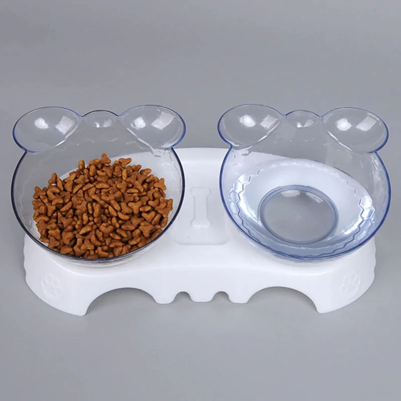 Plato doble con base con altura e inclinación de 15° que ha sido cuidadosamente diseñado para mejorar la postura de alimentación de nuestras mascotas mimadas, reduciendo la compresión de la columna vertebral causada por inclinarse y preservando la salud de su espalda. Los cuencos extraíbles permiten una cómoda limpieza.