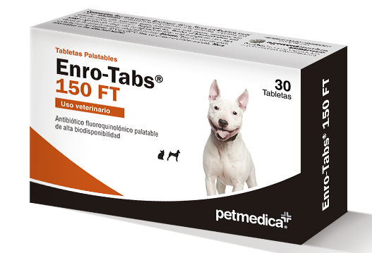 Enro-Tabs 150 FT es un antibiótico oral veterinario a base de enrofloxacina 150 mg, indicado para el tratamiento de diversas infecciones bacterianas en perros y gatos. Presentación con 30 tabletas para administración fácil y eficaz.