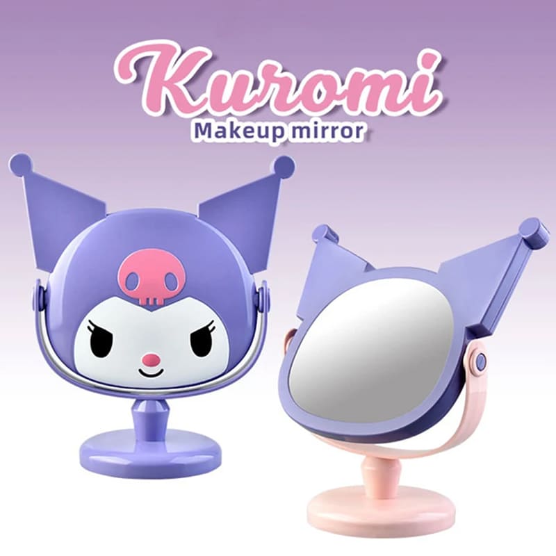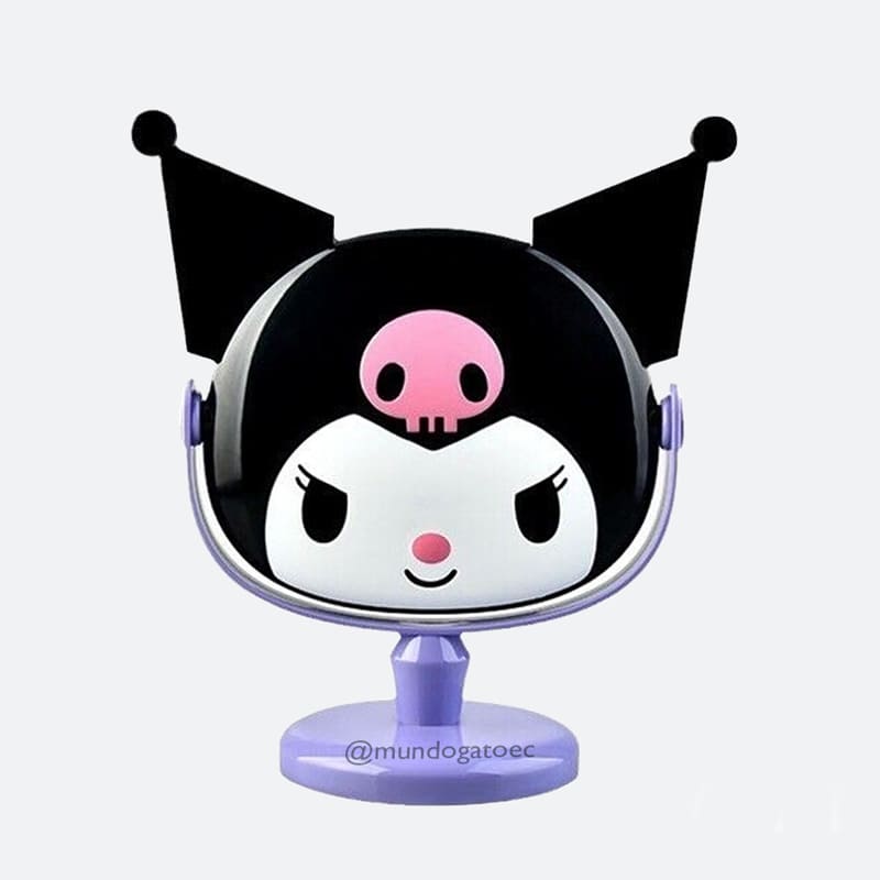 Este espejo tiene un diseño adorable con la cara de Kuromi, la famosa personaje de Sanrio.
