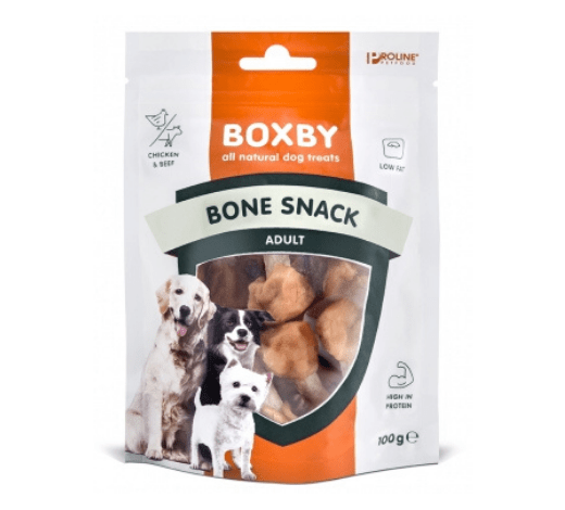 Sabrosos snacks ahumados de pollo con forma de hueso.