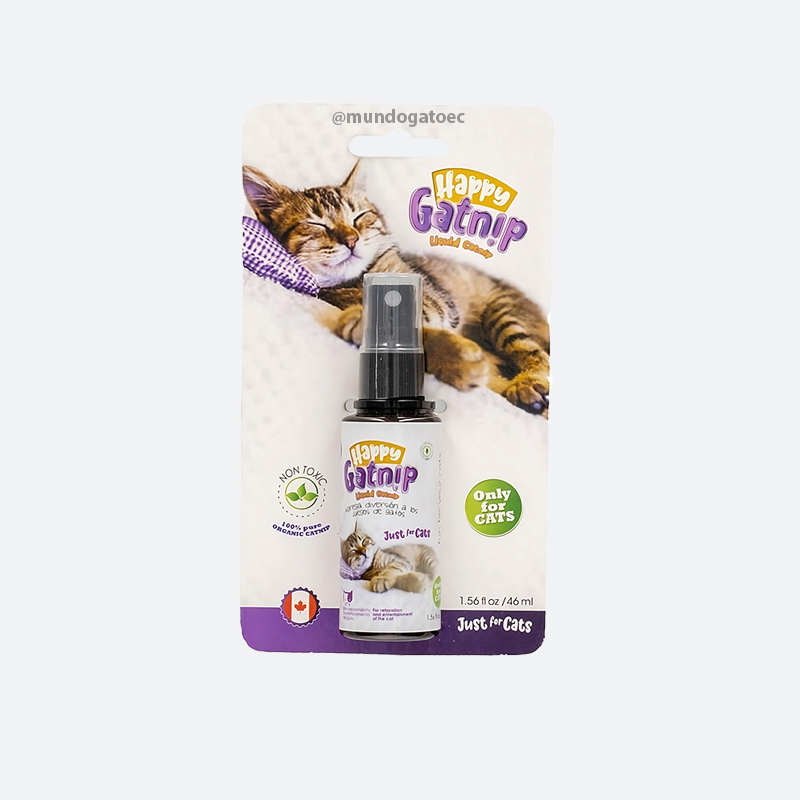 - El happy gatnip en spray permite poner la hierba de manera rápida y efectiva en cualquier superficie.
