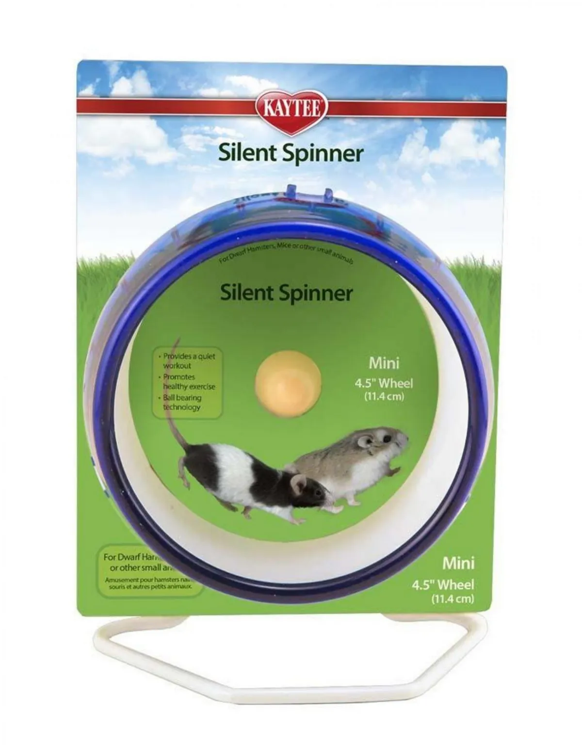 Silent Spinner Mini es la maravillosa y silenciosa rueda de entrenamiento para hámsteres y ratones enanos. La tecnología patentada de cojinetes de bolas hace que estas ruedas sean súper silenciosas. Los Silent Spinners funcionan de dos maneras: independientes o conectados directamente a cualquier jaula de alambre. La rueda es una superficie para correr de plástico de alta calidad de 4,5 pulgadas de diámetro que es segura y cómoda para los pies de tu amigo peludo. Disponible en azul violeta rojo y verde.