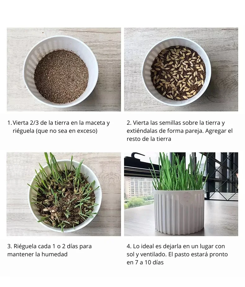 5. El pasto estará listo para su consumo en un periodo de 7-10 días.