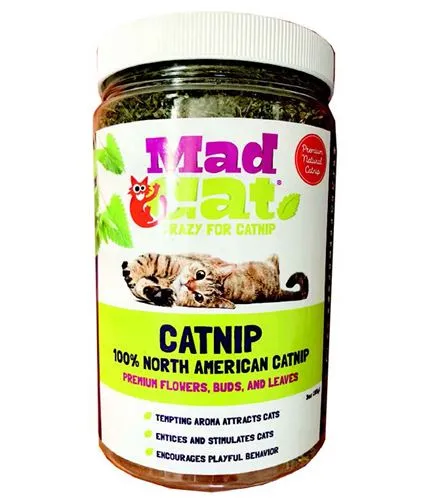 MAD CAT 1.25 OZ CATNIP JAR Tarro de 1.25 oz de hierba gatera para entretener a tu gato.