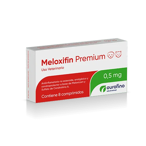 Meloxifin Premium analgésico, antiinflamatorio y condroprotector con meloxicam y Sulfato de Condroitina para perros y gatos.