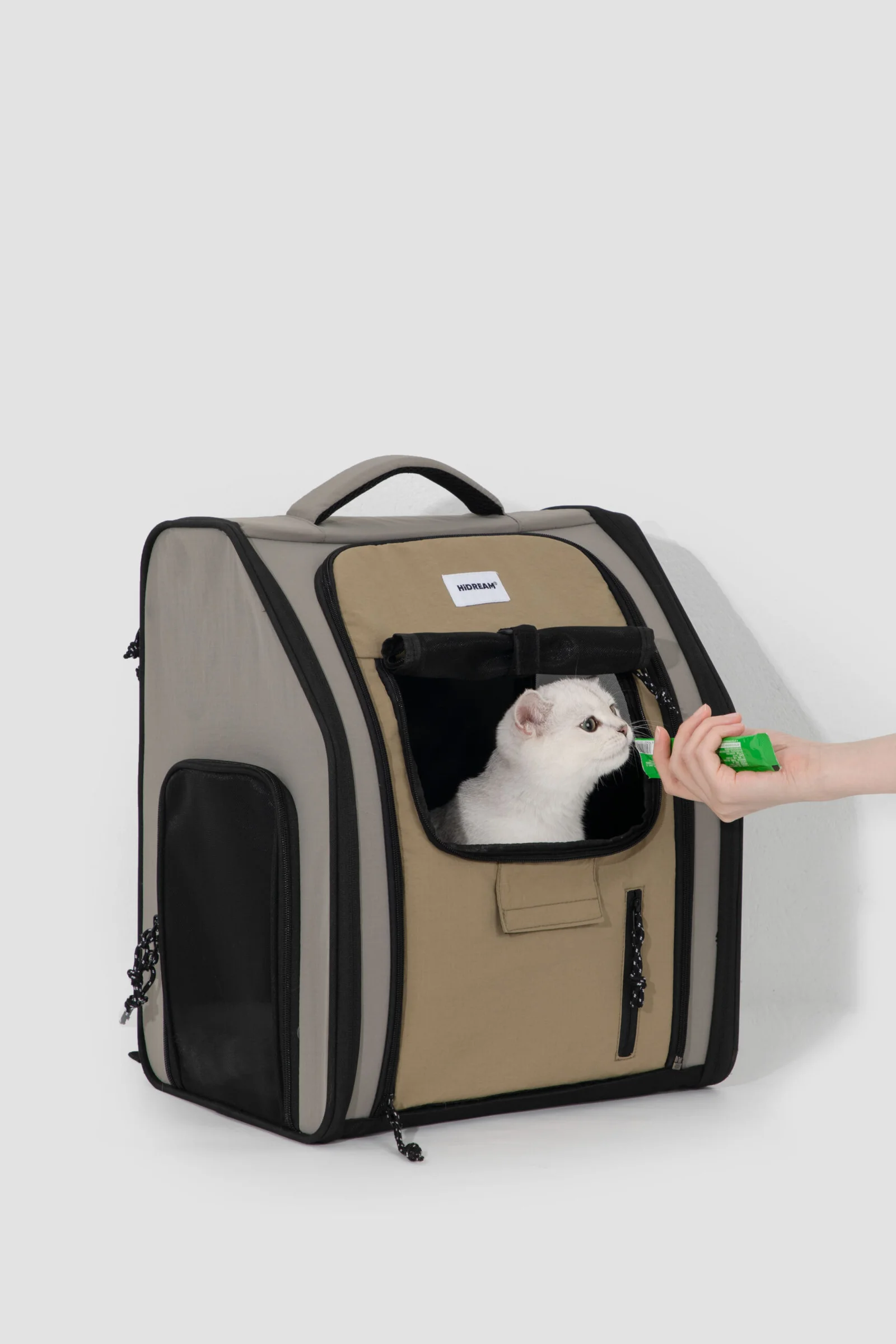 Gran apertura para fácil acceso: La mochila cuenta con grandes cremalleras en ambos lados y en la parte delantera, permitiendo que la mascota entre y salga libremente, aumentando la sensación de espacio y facilitando el movimiento cómodo en el interior.