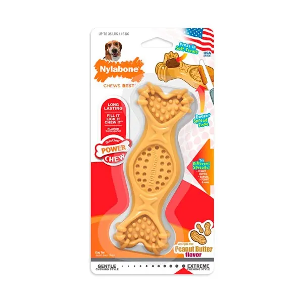 Juguete de masticar de larga duración que satisface la necesidad natural de tu perro de masticar. El juguete para masticar se puede cargar con deliciosos dulces. Contiene dulce sabor a mantequilla de cacahuete El juguete de masticar con textura limpia los dientes y refresca el aliento.