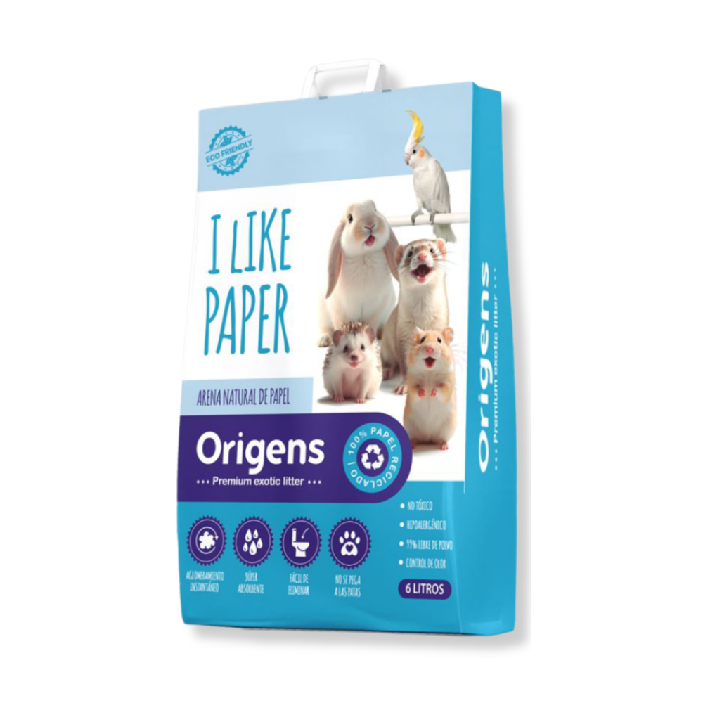 La Arena de Papel Origens es la primera arena de papel sin olor en Perú, especialmente diseñada para animales exóticos como conejos, hámsters, cuyes y otros pequeños compañeros. Su fórmula 100% biodegradable y sin polvo la convierte en la opción más segura y amigable con el medio ambiente.