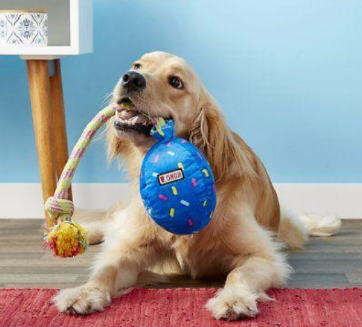 KONG Birthday Balloons añaden mayor diversión a cualquier cumpleaños con un juguete festivo para arrojar y buscar, y son el centro de la fiesta. La larga cuerda es ideal para juegos de arrojar y buscar y proporciona una fiesta divertida de sacudidas que satisface las necesidades del instinto. Los sonidos chillones y de chirridos mantienen a los perros entretenidos en un juego saludable y activo con un globo de cumpleaños que jamás se desinfla.