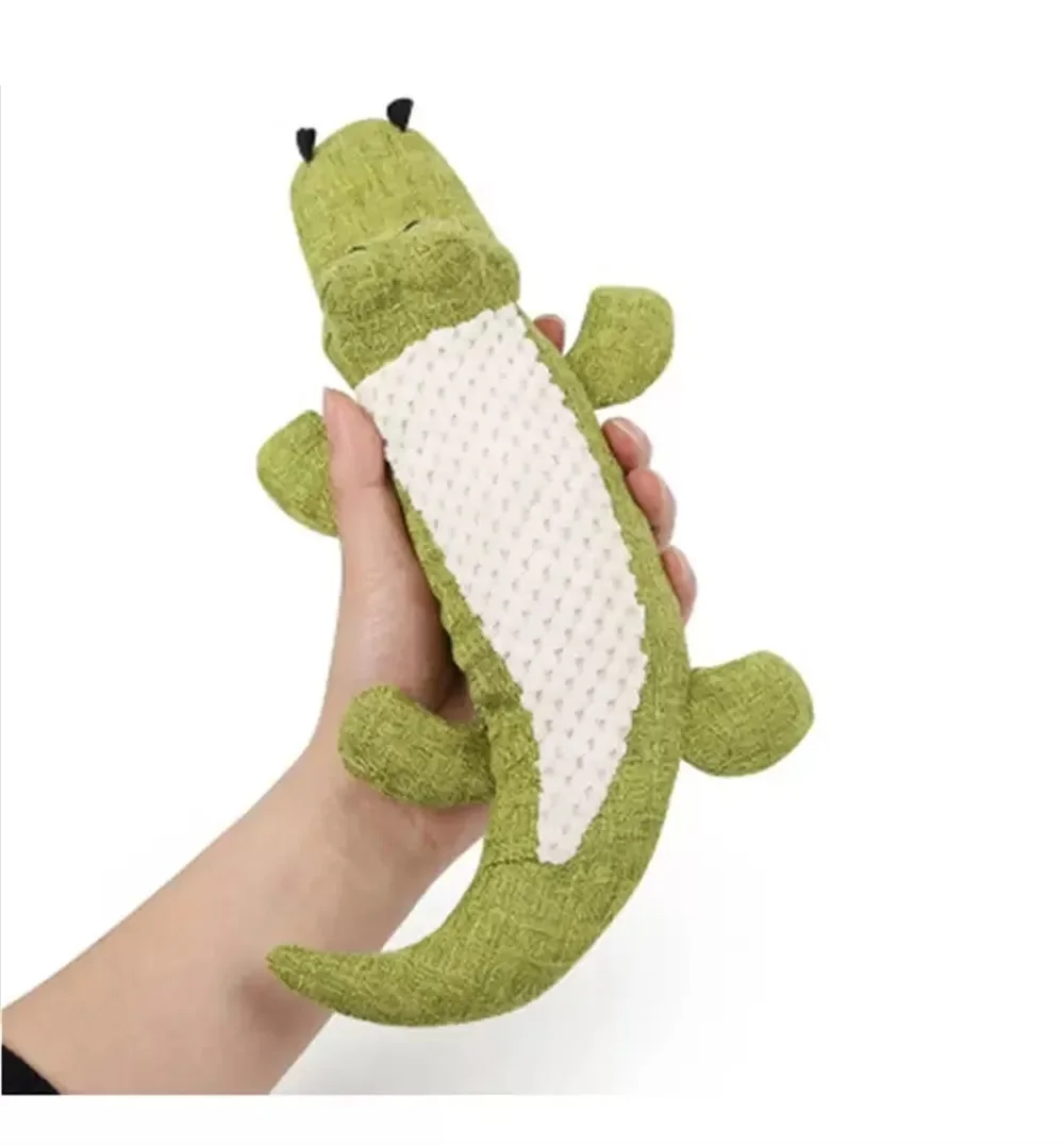 Cocodrilo de peluche suave para perros pequeños, medianos y grandes. Juguete con sonido chirriante y resistente a las mordeduras. Realizados en algodón suave y felpa no tóxica. Cosidos de alta calidad. Lavables a máquina, mantienen el sonido luego de lavarlos, ideal secarlos a máquina.