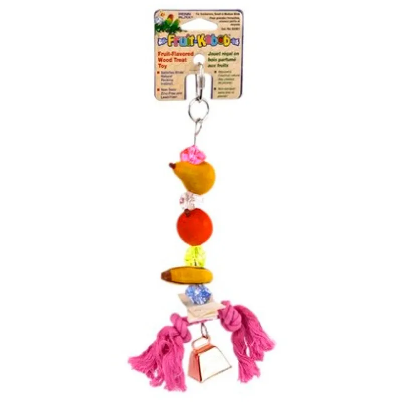 Los pájaros necesitan muchos juguetes coloridos y estimulantes para mantenerlos ocupados durante todo el día. Este Fruit Kabob es una gran adición a su entorno. El Parrot Fruit Kabob es un juguete divertido y de inspiración tropical que incluye frutas de juguete que tu pájaro puede picotear y admirar. Decorado con cuentas multicolores , el juguete añadirá un poco de color a tu pajarera. Fácil de instalar, simplemente sujételo a cualquier barra de metal de la jaula. Es resistente y está hecho de madera no tóxica. Este juguete también cuenta con una pequeña cuerda y una campana con las que tu pájaro puede interactuar.