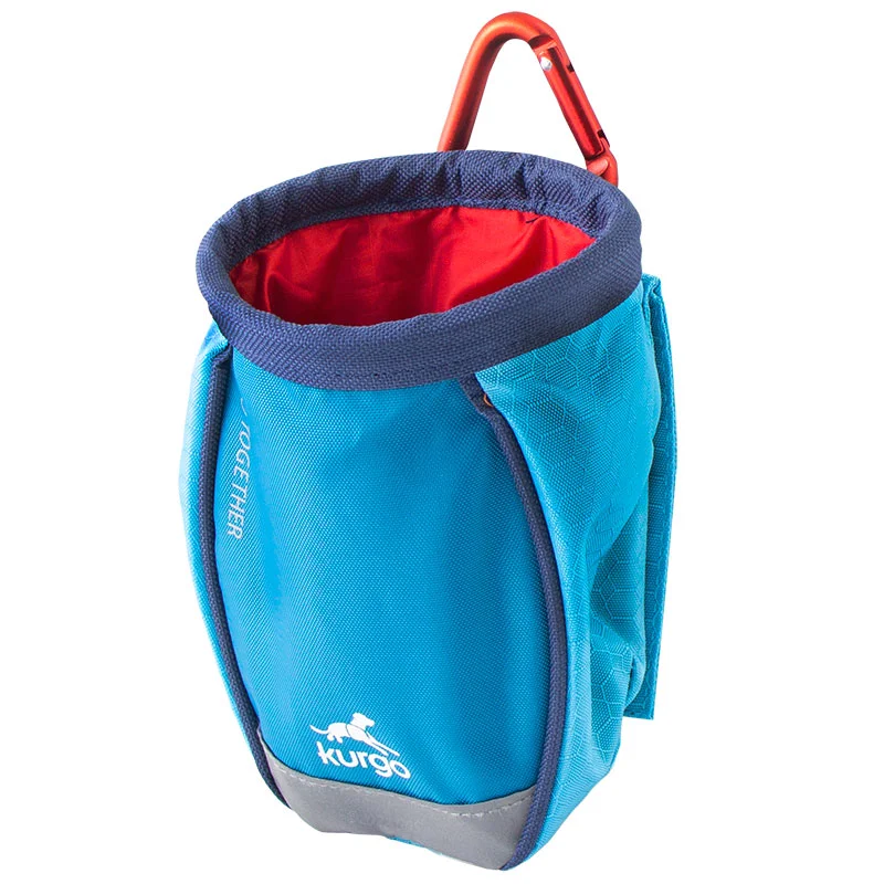 La amplia abertura de 11,4 cm facilita el acceso con la mano y el cierre con cordón asegura las golosinas rápidamente. Hemos añadido un bolsillo adicional para guardar llaves, un silbato o bolsas para excrementos. El clip de plástico para cinturón o el mosquetón te permiten elegir la forma de sujetarlo.