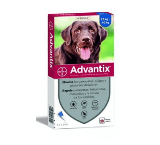 Después de aplicar el contenido de la pipeta sobre la piel de tu perro, la sustancia activa de Advantix® se distribuye rápidamente por toda la superficie de su cuerpo, asegurándole una máxima protección y manteniendo a tu perro sano y feliz. Puedes aplicarlo a partir de 1,5 kilos y 7 semanas de edad, también durante el periodo de gestación y lactancia sin convertirse en un riesgo ni para el cachorro ni para la madre.