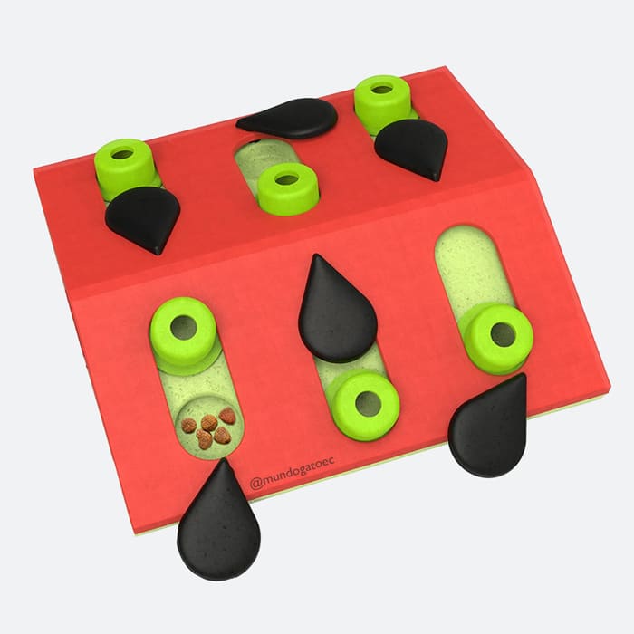 El plato rompecabezas interactivo de golosinas para gato, al mismo tiempo que estimula la curiosidad es un alimentador lento y un juguete con varios niveles de dificultad para bocadillos.