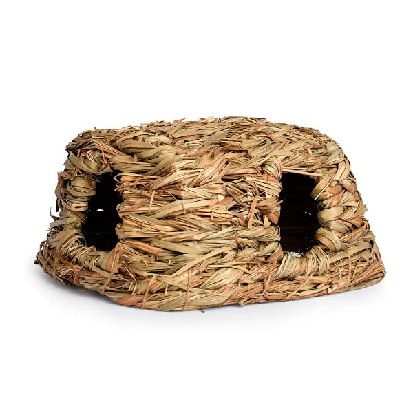 Nature’s Hideaway Medium Grass Hut (#1097) from Prevue Pet Products is a hand-woven grass activity center for your small animal. The sweet fragrance of 100% all natural grass materials comes through in this fun playtime accessory while satisfying your pet’s natural instinct to burrow, explore, and nest. Ideal for a chinchilla or guinea pig.
