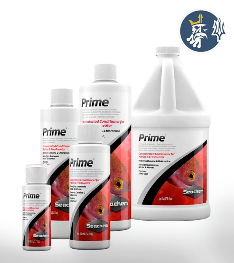 cloramina y los metales pesados en acuarios de agua dulce y salada. Además, 100 ml. de PrimeTM eliminarán desechos orgánicos como el Amonio, Amoníaco,