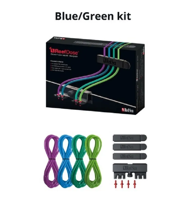 Todo lo necesario para conectar una bomba dosificadora en un práctico kit. Disponible en versiones de 2 colores (azul/verde y rojo/amarillo), brindando 8 colores únicos para identificar fácilmente una gama completa de suplementos desde el contenedor hasta la punta dosificadora. Cada equipo de bomba para pecera contine:
