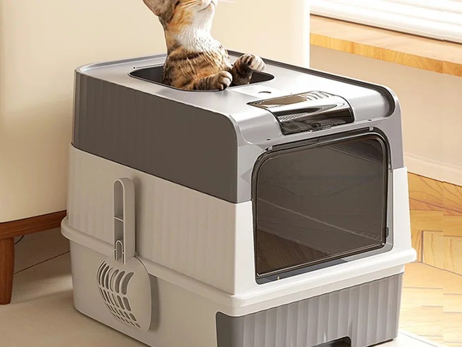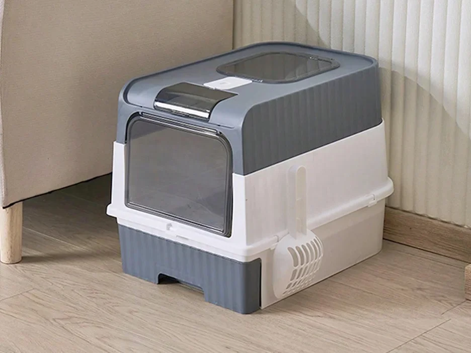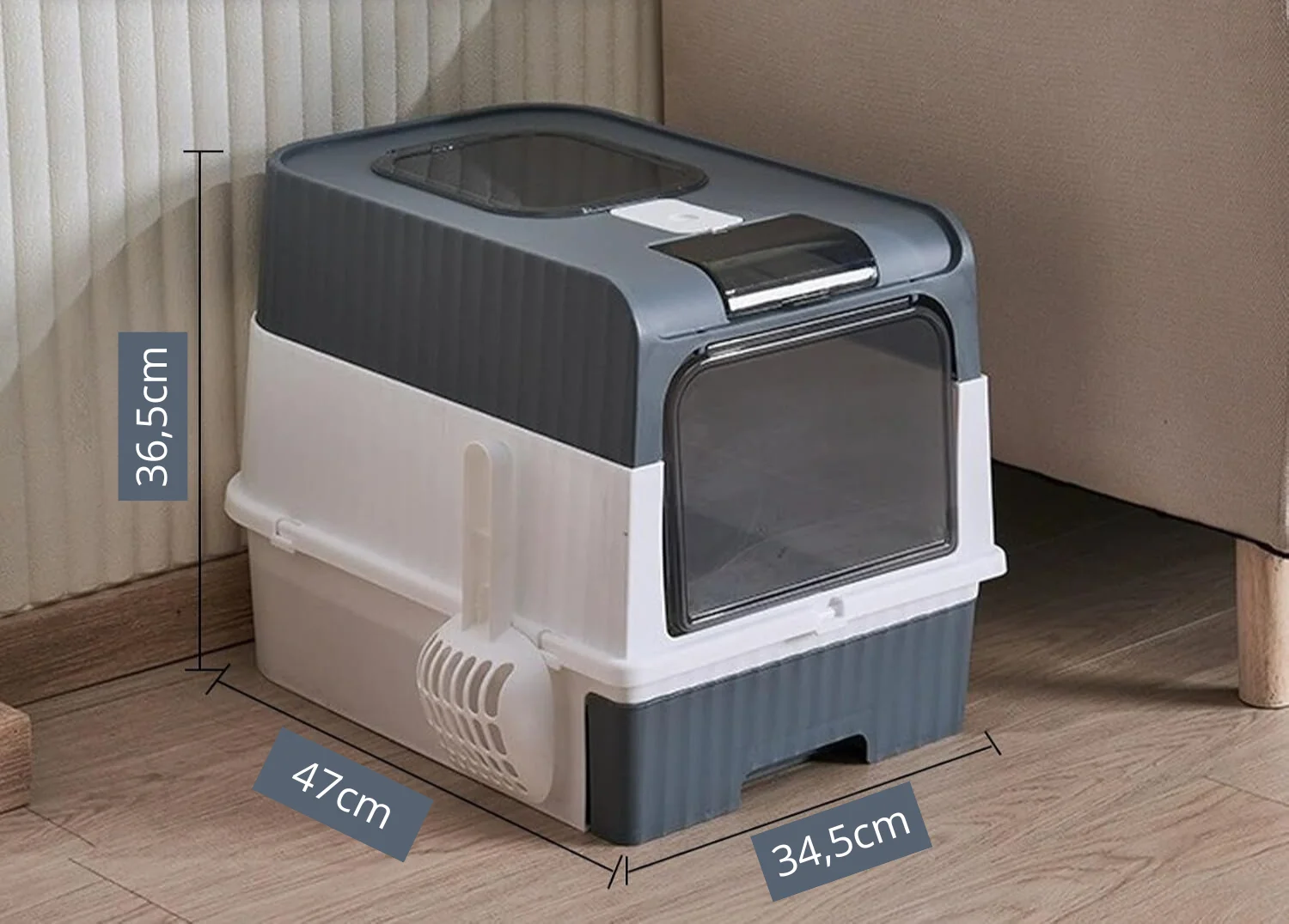 Sanitario arenero cerrado con salida superior 47×34,5×36,5cm. (Gris)