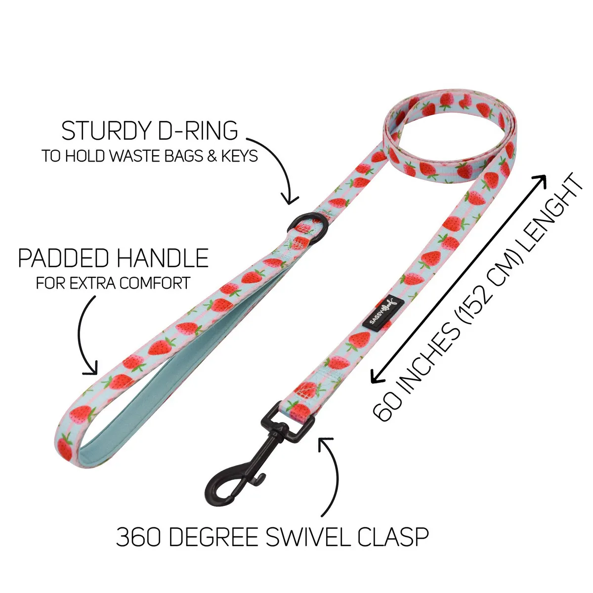 CORREA – TE WOOF BERRY MUCHO Las fresas saben bien en todo, ¡y también se ven geniales en tus cachorros! Este diseño original de Sassy Woof presenta tonos azules y rosados con frutos rojos brillantes para darle un toque de color. Camine con estilo con nuestra correa ‘I Woof You Berry Much’. Descripción: – 60 «de largo y 0.8» de ancho – Acolchado con mango de neopreno para mayor comodidad para los humanos. – Anillo en D resistente en la base del asa para guardar bolsas de basura y llaves – Completa el juego con nuestro arnés, collar y soporte para bolsa de basura ajustables a juego Instrucciones de cuidado: Limpiar las manchas con agua y jabón. Colgar para secar.