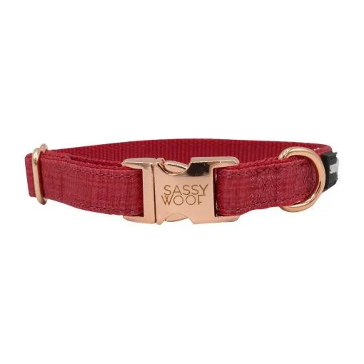 Collar Sassy Woof Merlot S para perritos pequeños. ¡Estilo y seguridad para tu fiel amigo canino!