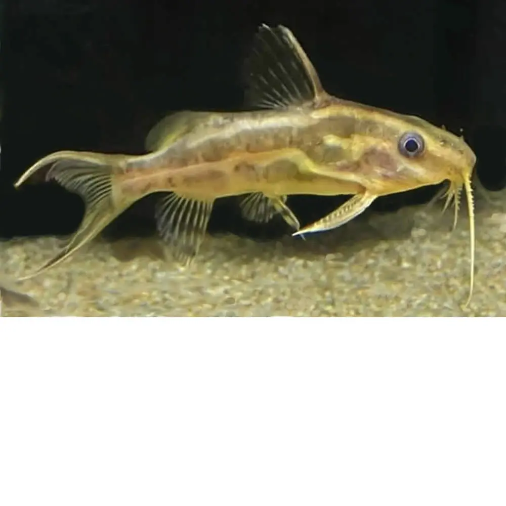 El hermoso Sinodontis de bandas amarillas, con sus grandes colores y su fascinante dibujo, es menos revoltoso que otros peces gato de barba de pluma, y se adapta muy bien a la socialización con tetras y otros peces de tamaño pequeño y mediano. Por cierto, el nombre de la especie flavitaeniatus significa «amarillo rayado». Con su marcado comportamiento social, definitivamente necesita la compañía de congéneres, entonces este gran bagre del Congo es la adición perfecta a un acuario africano.
