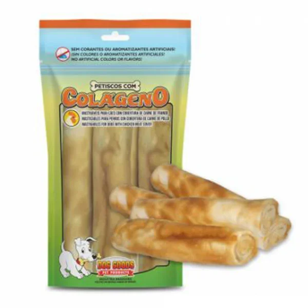 Snack de colágeno sabor pollo, Rollos – 4 unidades. Empaquetado en bolsa con cierre