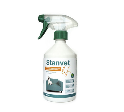 Aplicar unas vaporizaciones en el cuello y en el lomo del animal, protegiendo los ojos y las orejas. Renovar la aplicación todos los días, preferiblemente antes del paseo. En zonas o temporadas con más presencia de insectos, puede aplicarse dos veces al día. Para una máxima protección, combinar con el collar y las pipetas Stanvet Life.