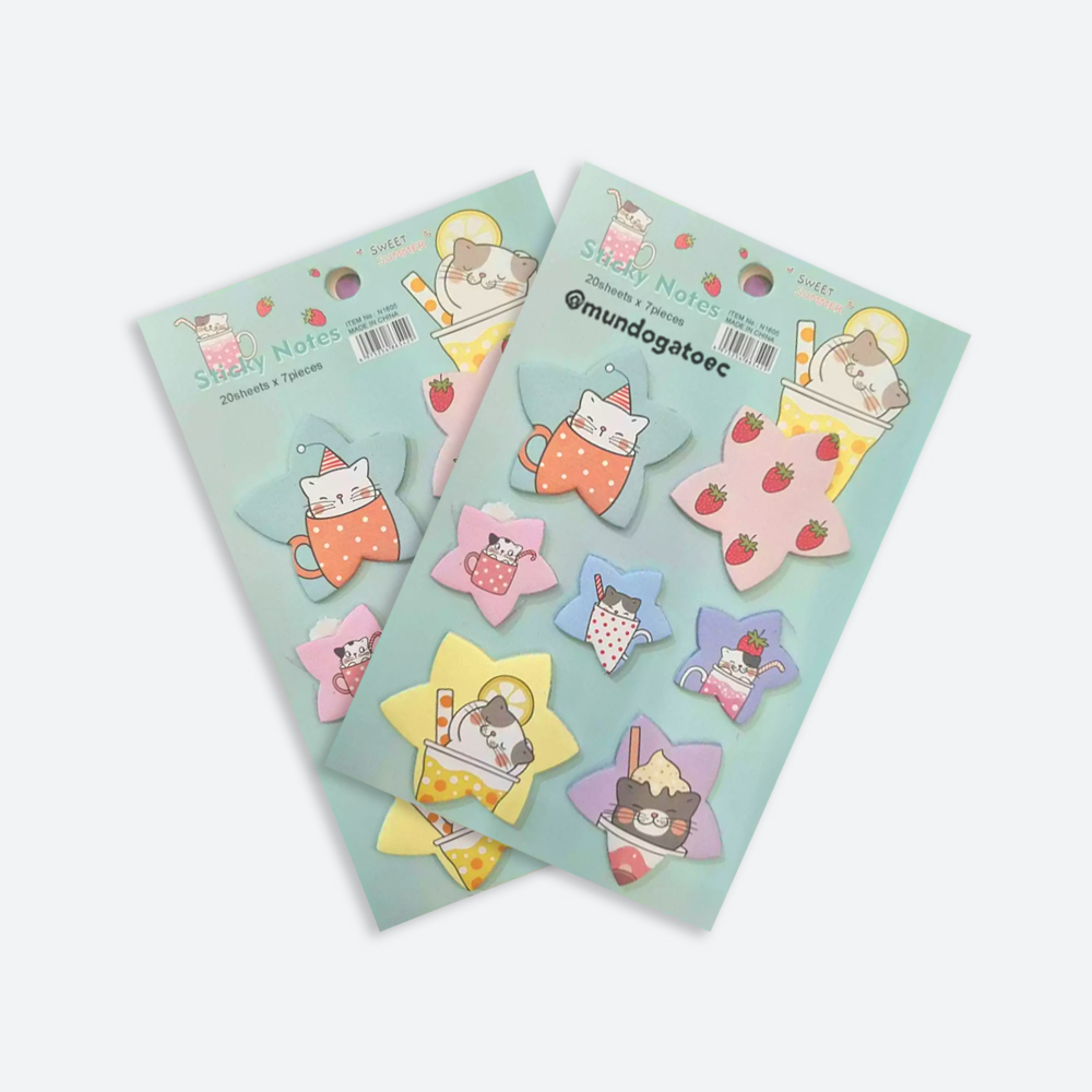 Descubre los encantadores Sticky Notes estrella de gatitos, ideales para los amantes de los gatitos. Estos hermosos Post It grandes, con un diseño adorable de felinos, son perfectos para añadir un toque de alegría a tus notas y recordatorios. Cada set incluye 7 adhesivos diferentes, cada uno con 20 hojas, brindándote un total de 140 hojas para tus anotaciones.