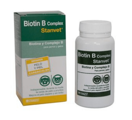 Incorpora una alta concentración de Biotina y una proporción equilibrada de vitaminas del grupo B. La biotina, debido a su intervención tanto en el metabolismo de carbohidratos como de lípidos, activa el metabolismo de la piel, pelo y uñas, en perros con síntomas carenciales dérmicos, como caída de pelo, picor y pruritos, dermatosis, pelo áspero y sin brillo. Las vitaminas del grupo B favorecen la normalización de la piel en afecciones cutáneas severas.